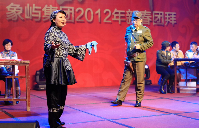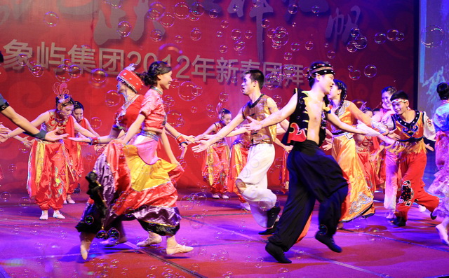 團(tuán)拜會上,象嶼人自編自導(dǎo)自演的春晚節(jié)目盛大登場。象嶼建設(shè)集團(tuán)獻(xiàn)演的歡慶歌舞《盛世中華》,身著民族節(jié)慶服飾的姑娘小伙們熱情奔放,氣勢恢弘;象嶼股份火辣的阿拉伯舞《美麗的姑娘賽比古兒》驚艷全場,扭轉(zhuǎn),抖肩,甩胯,窈窕的姑娘們盡情地綻放著耀眼的青春;上海區(qū)域選送京劇《智斗》,叱咤上海灘的各位公司高管齊登戲臺,無論是司令還是阿慶嫂,范兒倍足,調(diào)兒倍正,十足個(gè)性演繹,引發(fā)臺下叫好不斷;集團(tuán)公司聯(lián)合象嶼資產(chǎn)、象嶼配送、象嶼碼頭、象嶼建設(shè)表演的歌舞聯(lián)唱《歲月如歌》,高中基三級同臺,老中青三代盡歡,不同風(fēng)格的歌舞串聯(lián),展現(xiàn)的是象嶼文化的包容與開創(chuàng);福建/南平象嶼公司逗趣的《小人舞》創(chuàng)意無限,傳神的表情映襯恰到好處的肢體動作,笑點(diǎn)不斷,而很難想象的是每個(gè)人物都由雙人搭配,紅幕后是團(tuán)隊(duì)配合的默契;速傳物流活潑優(yōu)美的新疆舞《掀起你的蓋頭來》充滿戲劇色彩,群舞韻律動感,對舞火花擦撞,多情的青年男女追尋著炙熱的愛情,也寓意著象嶼人勇于追求心中美好的向往。春晚在晨帆合唱團(tuán)歡快的《陽光進(jìn)行曲》中成功落下帷幕。團(tuán)拜會現(xiàn)場歡樂、祥和,晚宴期間穿插的抽獎活動,更讓驚喜的歡呼尖叫聲接連不斷,公司為辛勤一年的員工們準(zhǔn)備的豐厚大禮,掀起現(xiàn)場一次又一次的高潮。
