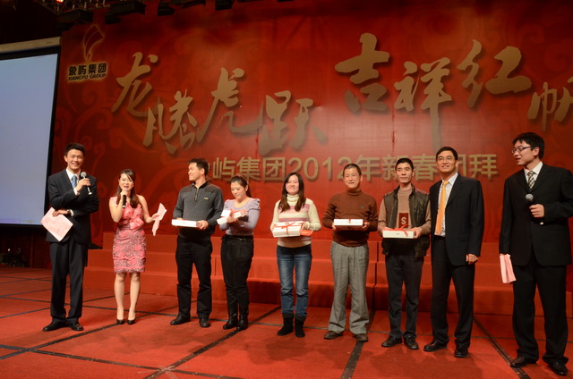 兔樂豐倉送舊年,龍騰喜浪迎新紀(jì)。1月14日晚,年度表彰大會后,象嶼集團(tuán)2012年新春團(tuán)拜會在廈門國際會展酒店隆重舉行。象嶼集團(tuán)在廈各公司員工、異地公司代表、退休老同志等上千人歡聚一堂,喜迎龍年新春佳節(jié)。王龍雛董事長率集團(tuán)黨委會、董事會、經(jīng)營班子成員共同舉杯給全體員工拜年,向全體象嶼同仁、家屬和離退休老同志表示親切的慰問和美好的祝愿。對員工過去一年的辛勤付出表示衷心感謝和誠摯敬意。