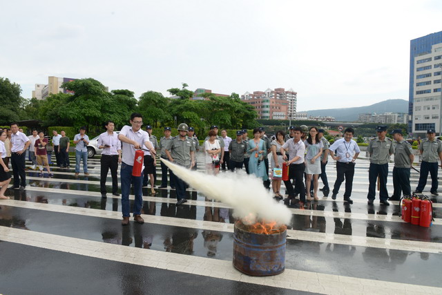 為了提高廈門國際航運(yùn)中心全員的應(yīng)急應(yīng)變能力,以全國第十三個(gè)“安全生產(chǎn)月”為契機(jī),6月19日下午,2014年象嶼保稅區(qū)應(yīng)急綜合聯(lián)動(dòng)演練在此成功舉辦。此次演練由象嶼保稅區(qū)管委會(huì)安監(jiān)局主辦,象嶼集團(tuán)、象嶼高尚物業(yè)承辦,湖里派出所、湖里消防八中隊(duì)、象嶼集團(tuán)員工代表、高尚物業(yè)公司全體員工及航運(yùn)中心租戶代表逾百人參加了此次演練。