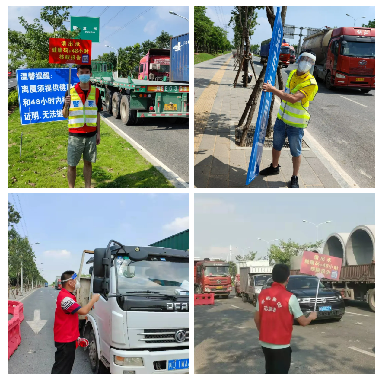 在海滄海翔大道東埔村,遠(yuǎn)遠(yuǎn)就能看到象嶼股份志愿者手持指引牌,“請(qǐng)出示健康碼+48小時(shí)核酸報(bào)告”,他們正在開展交通防控協(xié)管工作。他們?cè)诼房谝徽揪褪?小時(shí),凌晨24點(diǎn)到早上8點(diǎn)的夜班更是對(duì)志愿者們體力與毅力的考驗(yàn)。