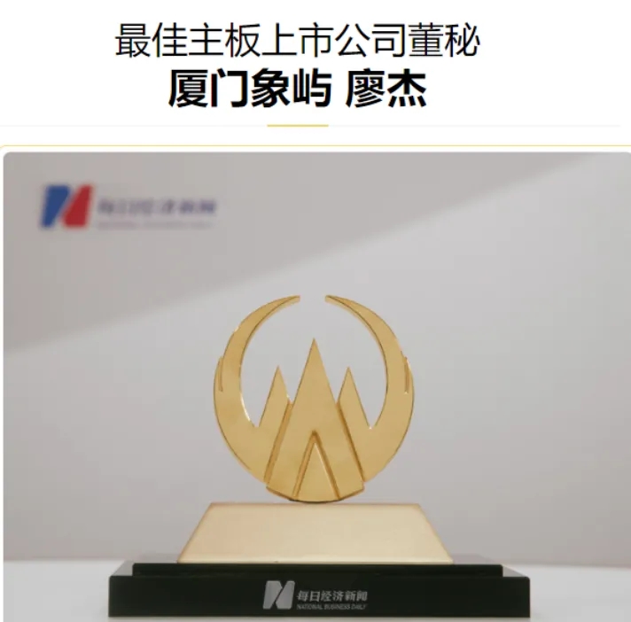 近日,由每日經(jīng)濟新聞主辦的“2021中國上市公司品牌價值藍皮書發(fā)布暨中國資本市場年度榮譽盛典”成功舉辦。廈門象嶼繼此前入圍“2021中國上市公司品牌價值活力榜TOP 100”后,再次入圍“2021福建上市公司品牌價值榜TOP 10”,品牌價值高達379.70億元,同時公司董事會秘書廖杰榮獲“2021最佳主板上市公司董秘”。