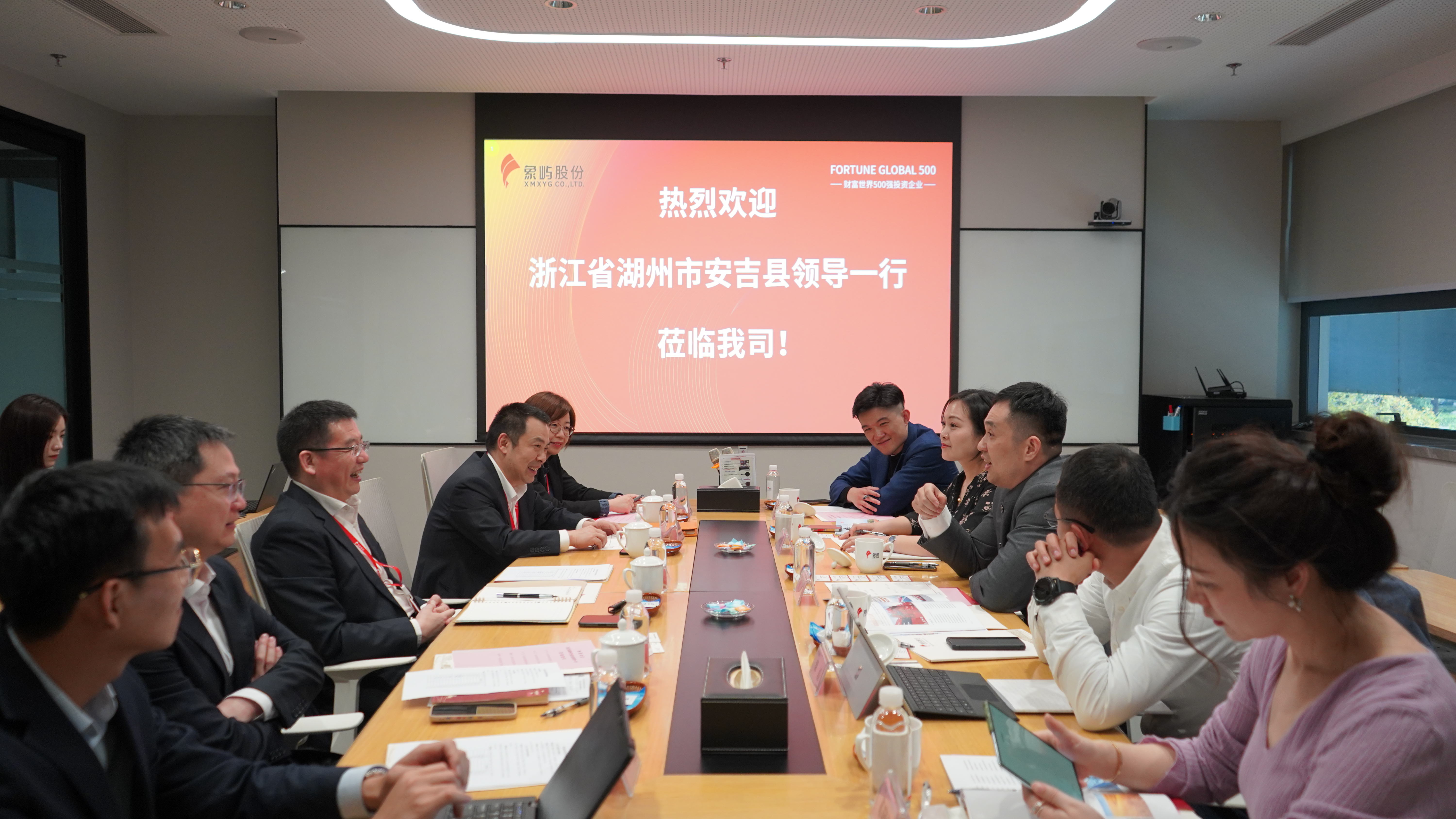座談會上,鄧啟東董事長對劉清局長一行的到來表示歡迎,并向來賓們詳細介紹了象嶼股份的發(fā)展歷程、主要業(yè)務板塊及經(jīng)營思路。鄧啟東表示,安吉是習近平總書記“兩山理論”的發(fā)源地,秉承“綠水青山就是金山銀山”的理念,安吉的發(fā)展成就有目共睹。象嶼股份也一直堅持綠色發(fā)展道路,希望未來能與安吉多溝通多互動,找到政企合作新空間。