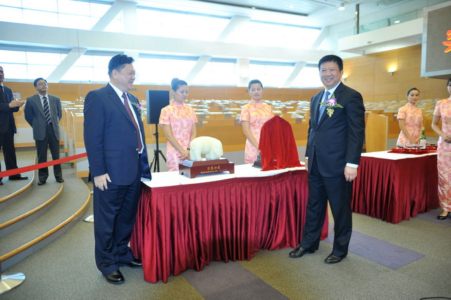廈門市人民政府葉重耕副市長、廈門市人民政府國有資產(chǎn)監(jiān)督管理委員會主任林杰、廈門象嶼保稅區(qū)管理委員會主任王軍及象嶼股份王龍雛董事長為雄獅點睛認(rèn)主